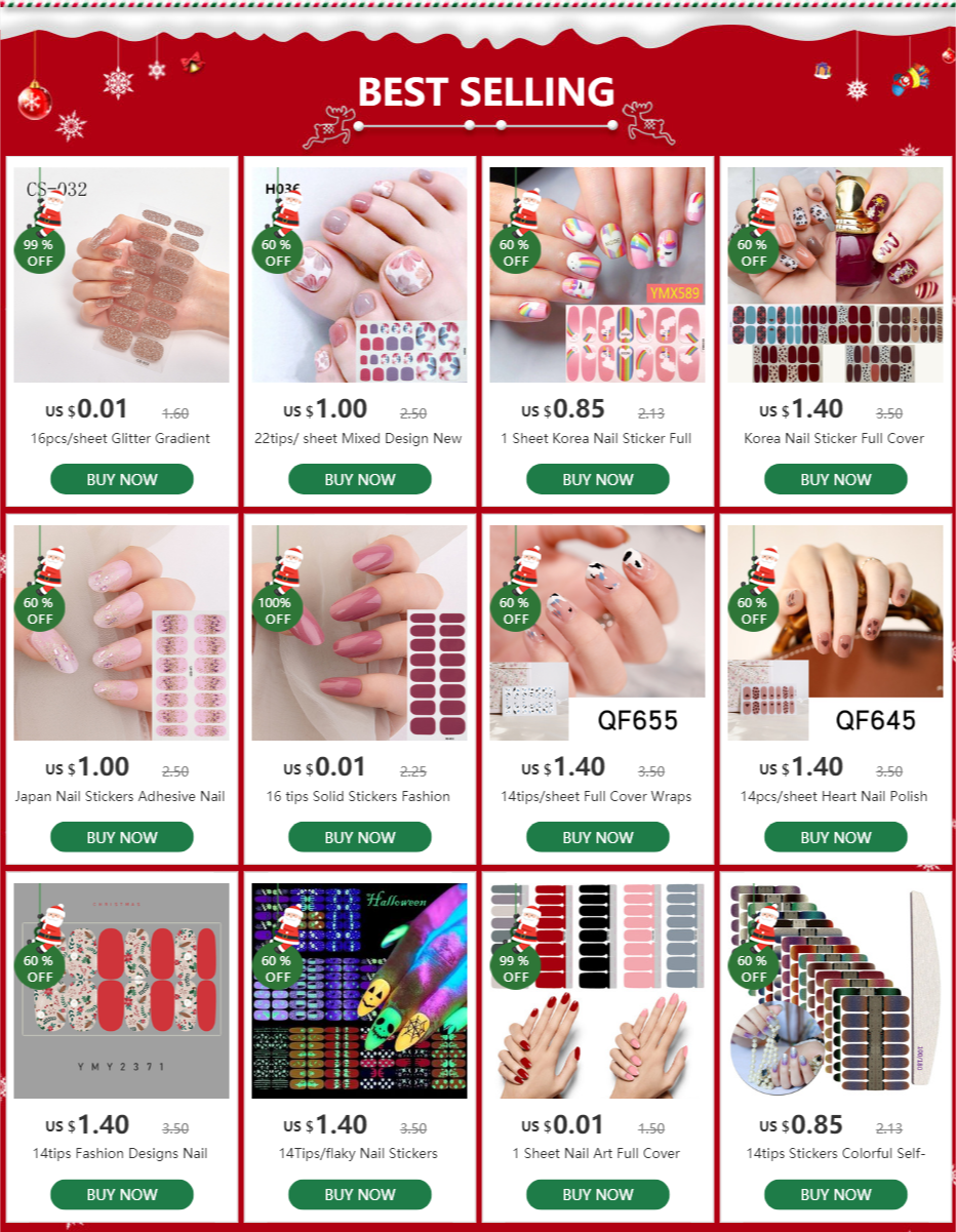 10/20pcs Full Cover Wraps Nail Polish Stickers Strips Plain Nail Art Decorations Stripe Designs Glitter Powder Manicure Tips High Quality Full Cover Self-adhesive Nail Art Decorations Nail Art Stickers: DA, XY, YMX, KS,, KSD, QF, UNE, SS ,GL,C,DQ,DQ3 Toenail Stickers: H, YMZ, JJ, GD Designs: Mixed Designs, Cute, Flowers, French, Heart, Gradient Glitter, Christmas, Marble and so on. Send Randomly Styles:Nail Polish Wraps Size: 7cm*12cm, 15.5cm*5.7cm Quantity:10Pcs/Set, 20Pcs/Set Feature: 14tips per sheet, 22tips per sheet Feature: Waterproof, Long-lasting, Eco-friendly Support wholesale and retail, if you want a wholesale price, please can contact us! Packing : 1 Sets Mixed Stickers (Notice: Send Randomly) Attention: Avoid to touch water in the first day of applying. Apply top coat will keep for a long time, if apply top coat, please cure with lamp. Due to different monitors, the color of the picture will be different.